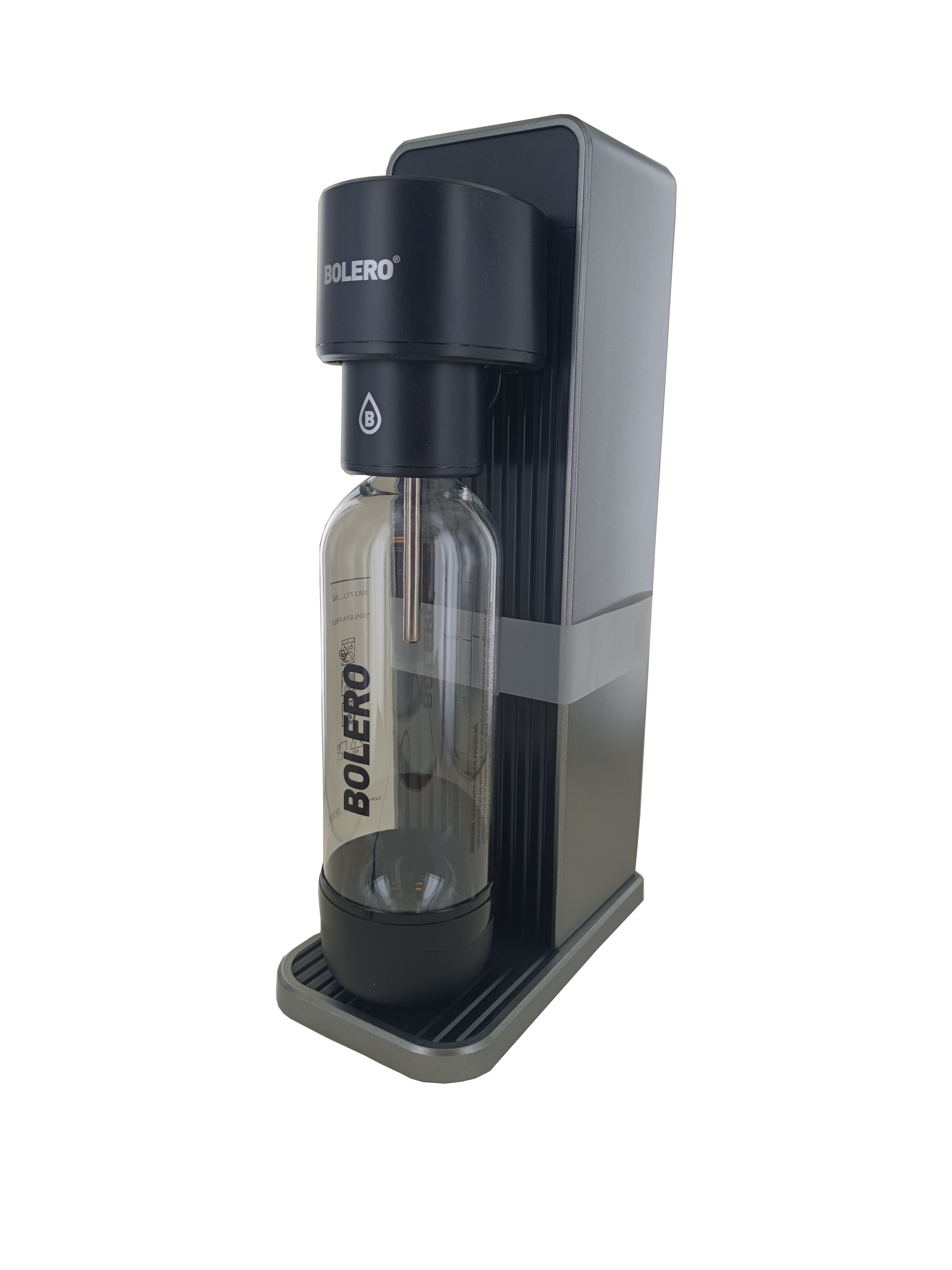 De Soda Maker is speciaal ontworpen voor gebruik met Bolero, inclusief de unieke Fizzle Fuze-dop waarmee je de druk veilig en gecontroleerd kunt laten ontsnappen. Dankzij de eenvoudige klik-en-draai-bevestiging zet je de fles moeiteloos vast, en met de speciale bruisknop bepaal je zelf hoeveel bubbels je toevoegt.