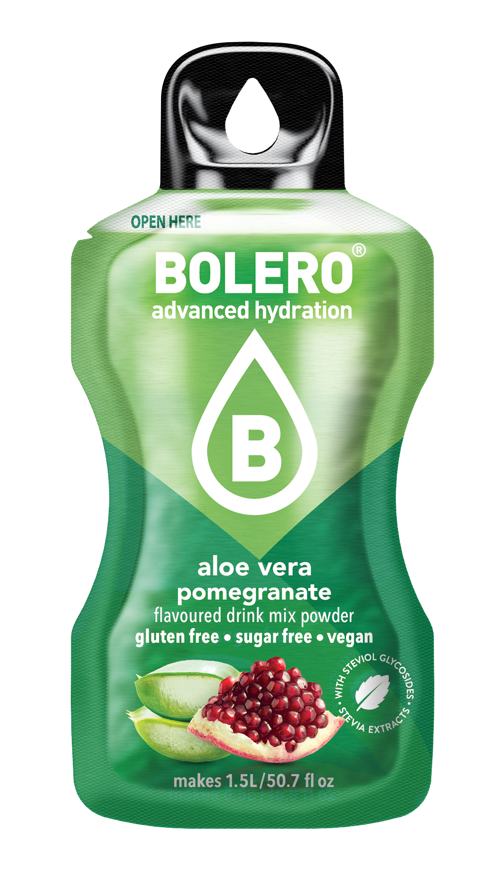 BOISSON BOLERO INSTANTANÉE AVÉC ÉDULCORANTS GOÛT ALOE VERA POMEGRANATE