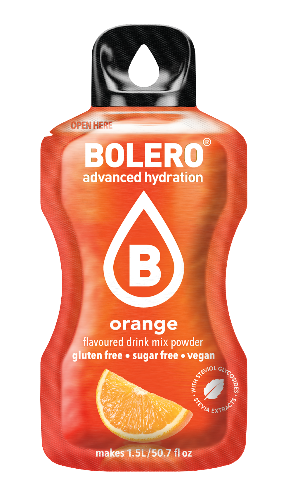 Acids: citric acid, malic acid; inulin fibre; flavourings; sweet-eners: acesulfame K, sucralose, steviol glycosides (stevia extracts); acidity regulator: sodium